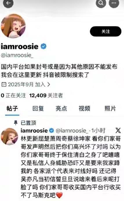 谁知道这姐根本没停手,转头就跑到海外社交平台接着作妖,嚣张喊话男明星:别以为发个辟谣声明就能万事大吉!她还闲着没事给涉事男星排起了名,说鹿晗和范丞丞是“顶级”。