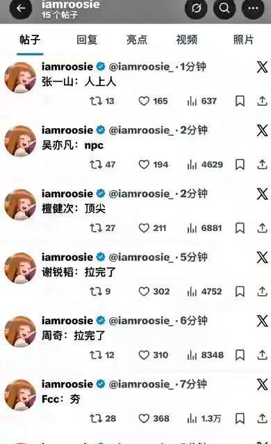 这姐堪称“女版陈冠希”,不整长篇大论的小作文,上来就甩“猛料”:和鹿晗的亲密合照、跟林更新的约饭闲聊记录、范丞丞的聚会视频、张一山送的零食、檀健次遗留的短袖……每个明星都配一个专属瓜,剧情比电视剧还刺激,网友看得目瞪口呆,直呼“瓜太多吃不过来”!
