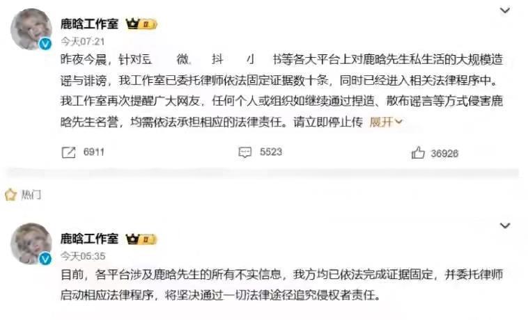 鹿晗也没含糊,工作室凌晨5点半就甩出严正声明,7点又补了一刀,明确说合照是假的,已经报警取证。林更新更绝,否认完所有事,还变相吐槽“有病就去治,祝你早日康复”,阴阳怪气又解气。